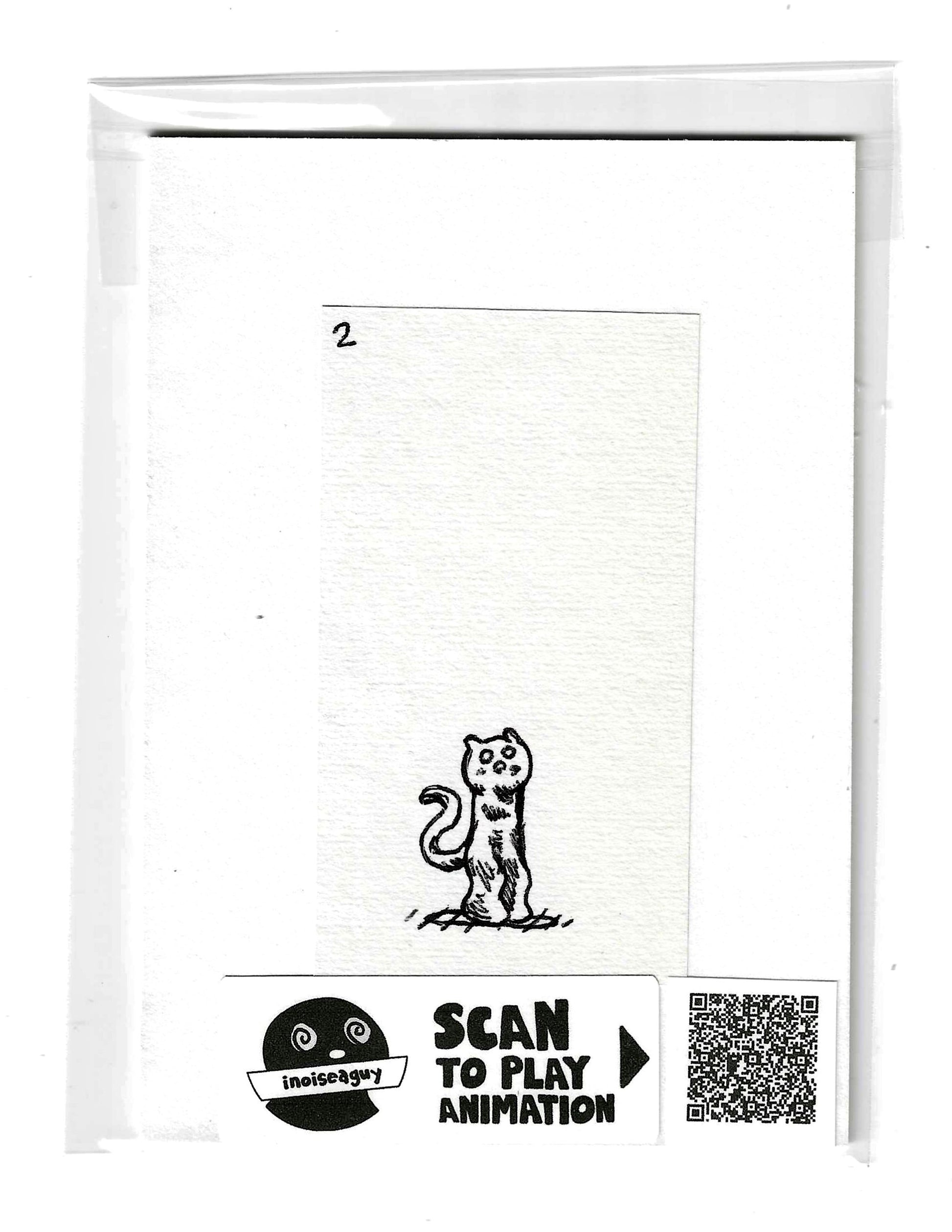 Cel from the traditional animated gif titled, Kissing Soul. Published in November 2025 on GIPHY.com. This cel is pasted on a 6"x4.25" matting board and protected by a plastic sleeve. On the sleeve is a label for the businesses social media and a unique QR code for the animation, that when scanned will display the animation on your smartphone. There is also an extra label and QR code inside the small yellow envelope in the cel's gatefold.
