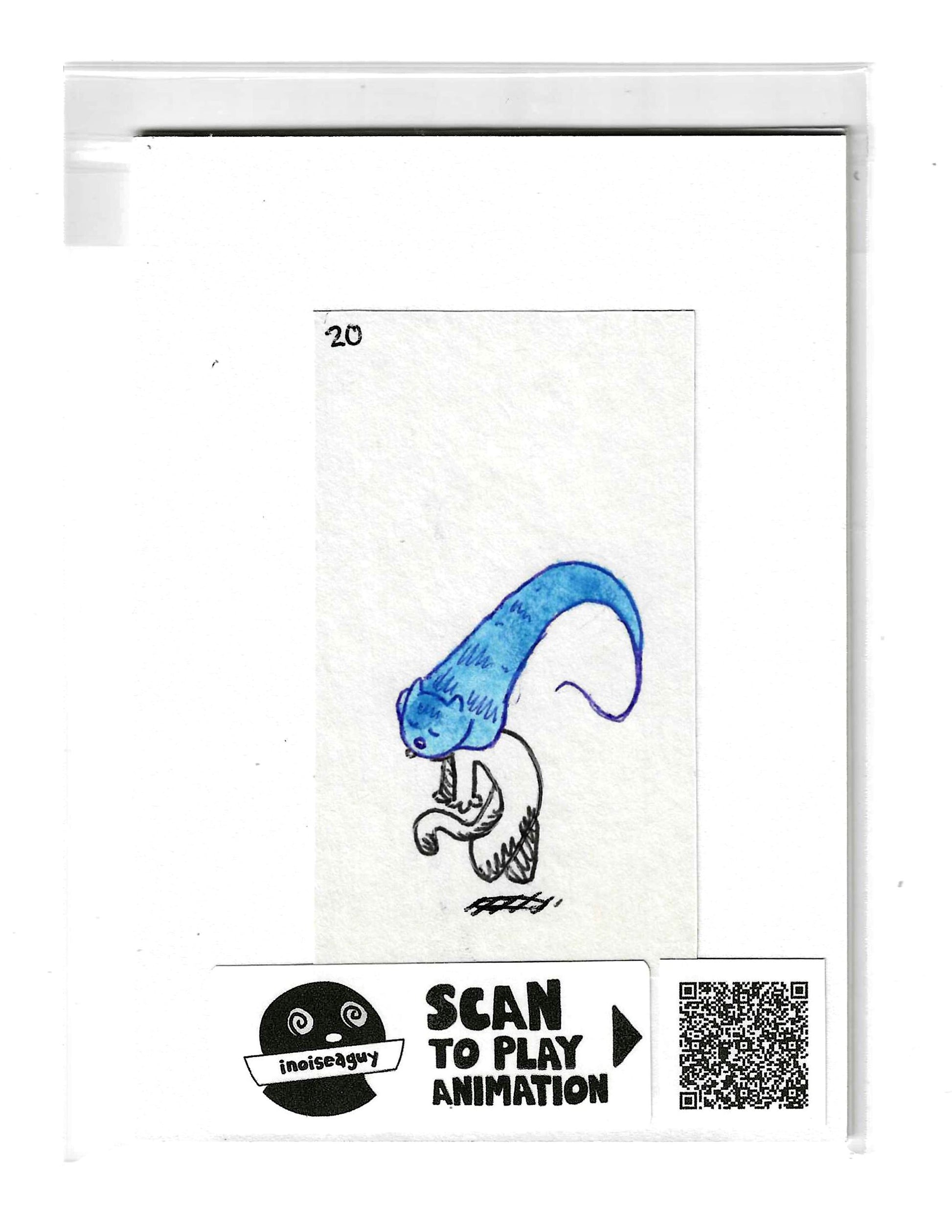 Cel from the traditional animated gif titled, Kissing Soul. Published in November 2025 on GIPHY.com. This cel is pasted on a 6"x4.25" matting board and protected by a plastic sleeve. On the sleeve is a label for the businesses social media and a unique QR code for the animation, that when scanned will display the animation on your smartphone. There is also an extra label and QR code inside the small yellow envelope in the cel's gatefold.