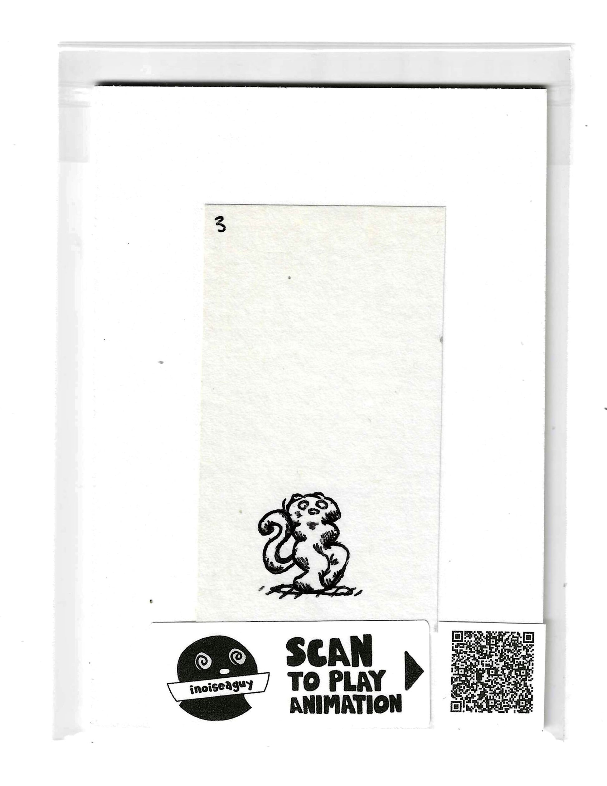 Cel from the traditional animated gif titled, Kissing Soul. Published in November 2025 on GIPHY.com. This cel is pasted on a 6"x4.25" matting board and protected by a plastic sleeve. On the sleeve is a label for the businesses social media and a unique QR code for the animation, that when scanned will display the animation on your smartphone. There is also an extra label and QR code inside the small yellow envelope in the cel's gatefold.