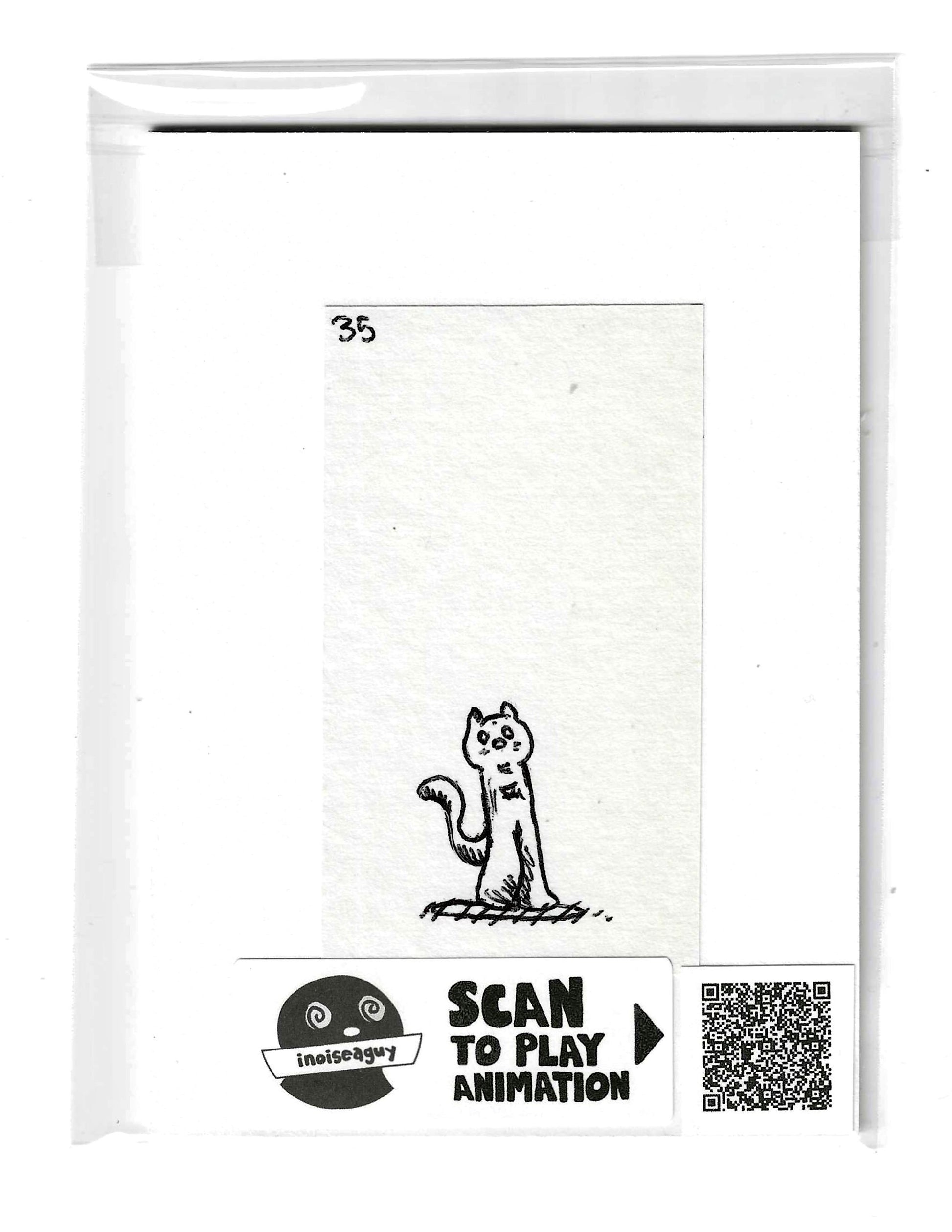 Cel from the traditional animated gif titled, Kissing Soul. Published in November 2025 on GIPHY.com. This cel is pasted on a 6"x4.25" matting board and protected by a plastic sleeve. On the sleeve is a label for the businesses social media and a unique QR code for the animation, that when scanned will display the animation on your smartphone. There is also an extra label and QR code inside the small yellow envelope in the cel's gatefold.