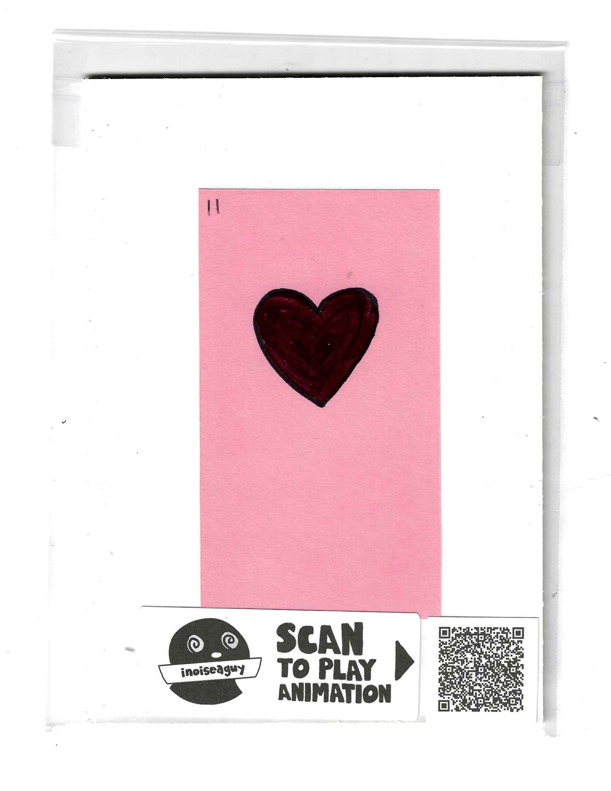 Cel from the traditional animated gif titled, Tar. Published in July 2025 on GIPHY.com. This cel is pasted on a 6"x4.25" matting board and protected by a plastic sleeve. On the sleeve is a label for the businesses social media and a unique QR code for the animation, that when scanned will display the animation on your smartphone. There is also an extra label and QR code inside the small yellow envelope on the backside of the cel.
