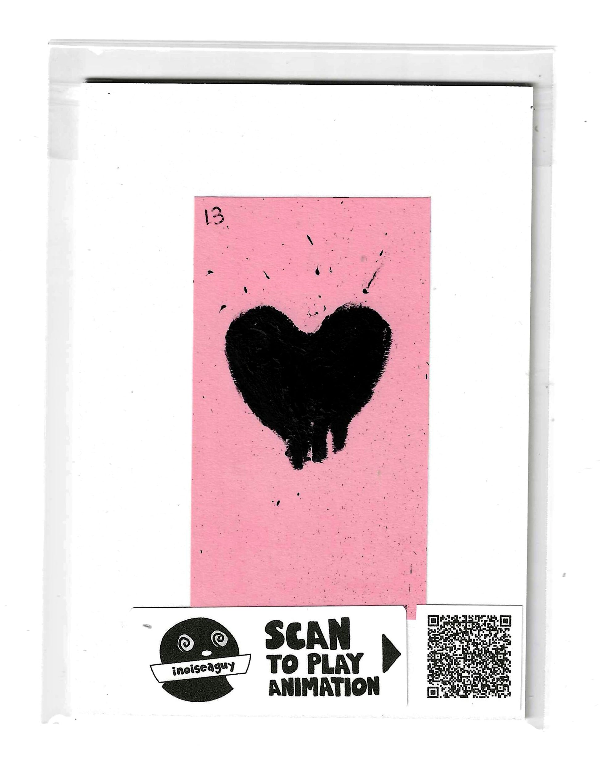 Cel from the traditional animated gif titled, Tar. Published in July 2025 on GIPHY.com. This cel is pasted on a 6"x4.25" matting board and protected by a plastic sleeve. On the sleeve is a label for the businesses social media and a unique QR code for the animation, that when scanned will display the animation on your smartphone. There is also an extra label and QR code inside the small yellow envelope on the backside of the cel.