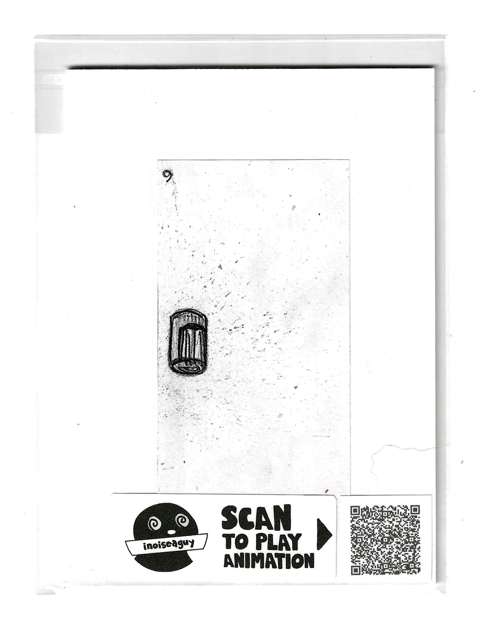 Cel from the traditional animated gif titled, Tokyo Electric Wires. Published in October 2025 on GIPHY.com. This cel is pasted on a 6"x4.25" matting board and protected by a plastic sleeve. On the sleeve is a label for the businesses social media and a unique QR code for the animation, that when scanned will display the animation on your smartphone. There is also an extra label and QR code inside the small yellow envelope in the cel's gatefold.